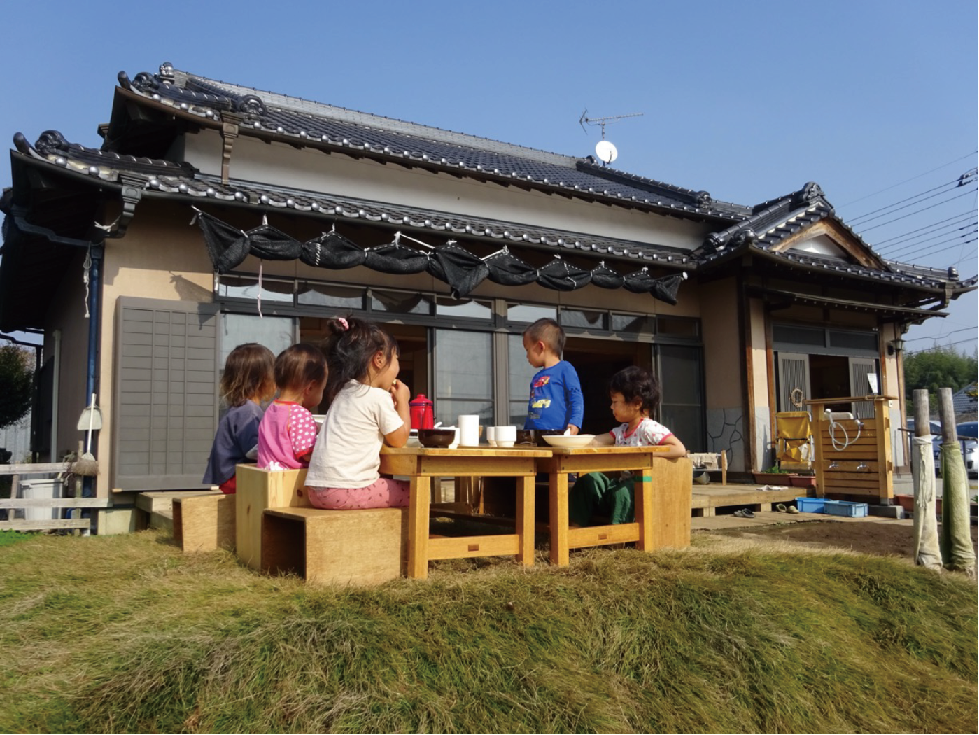 写真④わらしべの里共同保育所(k市)園舎と給食風景 (2021年2月25日)